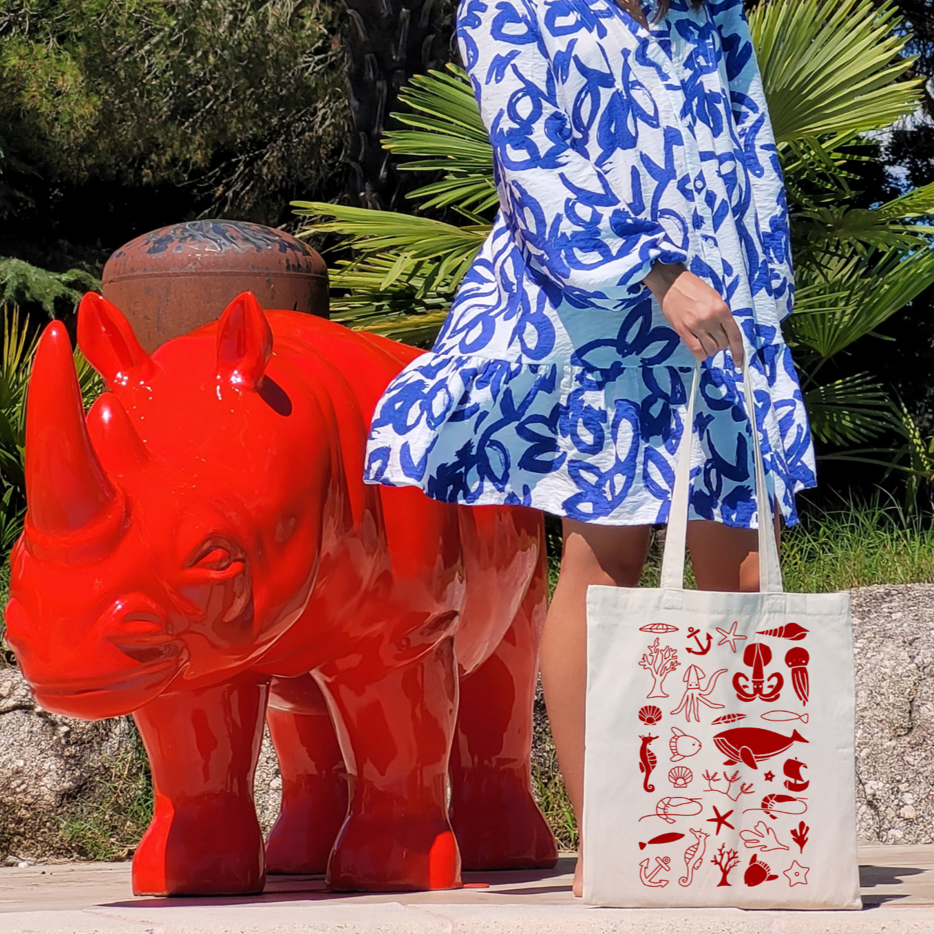 Plongez dans un style ludique avec le tote bag Sous l'Océan ! Ce sac baigne de créatures aquatiques qui débordent de joie à l'idée de se balader à votre épaule